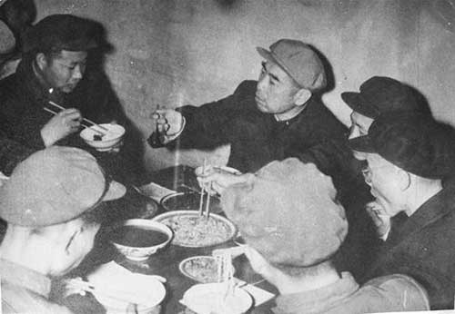 1958年的11月26日,周恩来、贺龙陪外宾参观应城红旗人民公社。吃饭时,原本应城县委准备了丰盛菜肴,周恩来审查菜单时全部否定,强调只准四菜一汤。吃饭时,周恩来往自己碗里夹豆芽、菠菜,把鱼肉不停地夹给社员们,说:“你们劳累辛苦,吃点鱼肉补身子。”饭后,周恩来叮嘱,原先准备的另外菜肴,全部送给敬老院、妇产院和幼儿园。 (资料图片)